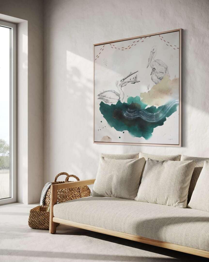 Stretched with a hardwood float frame: Image is stretched on a canvas frame and placed in a hardwood float frame of your choice (see frame options)
