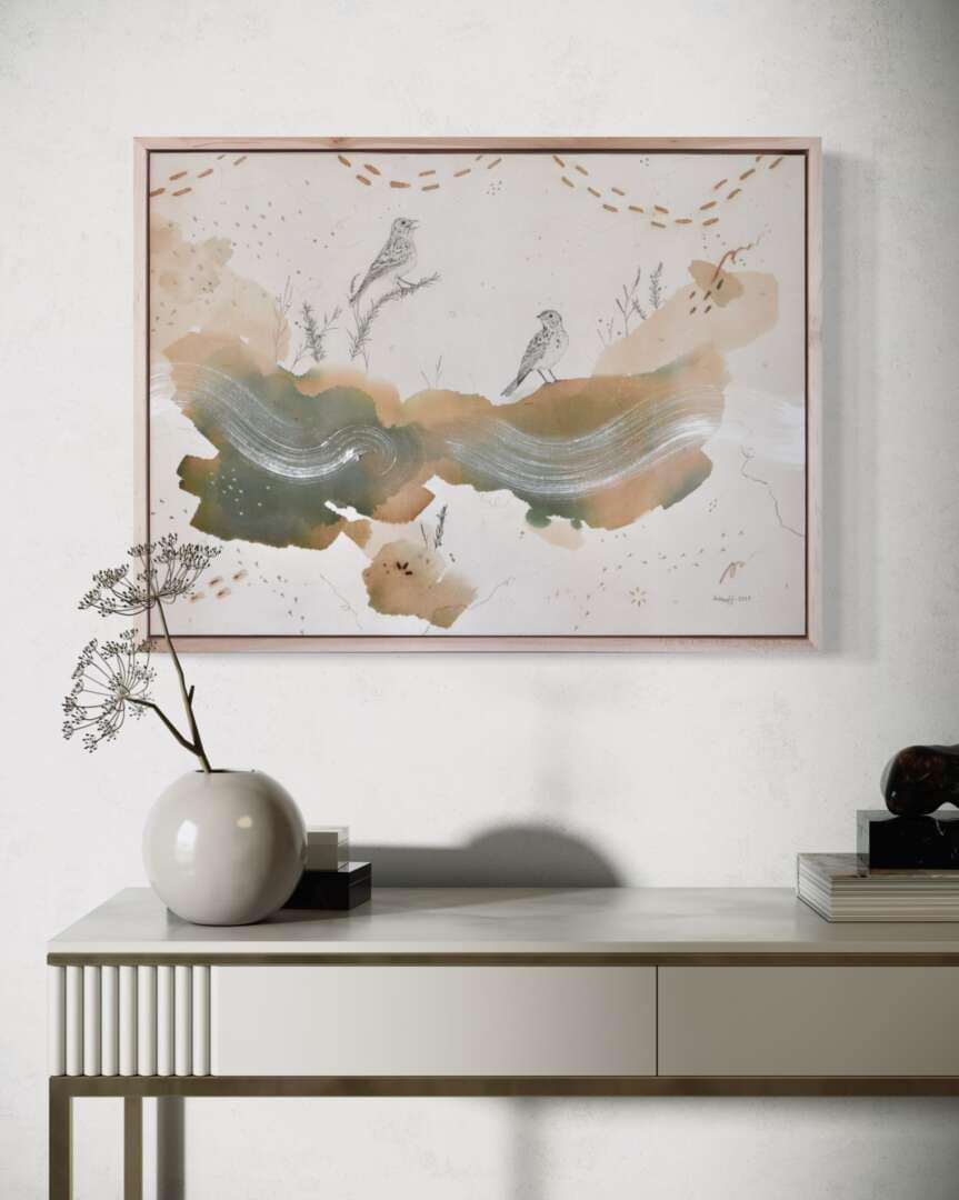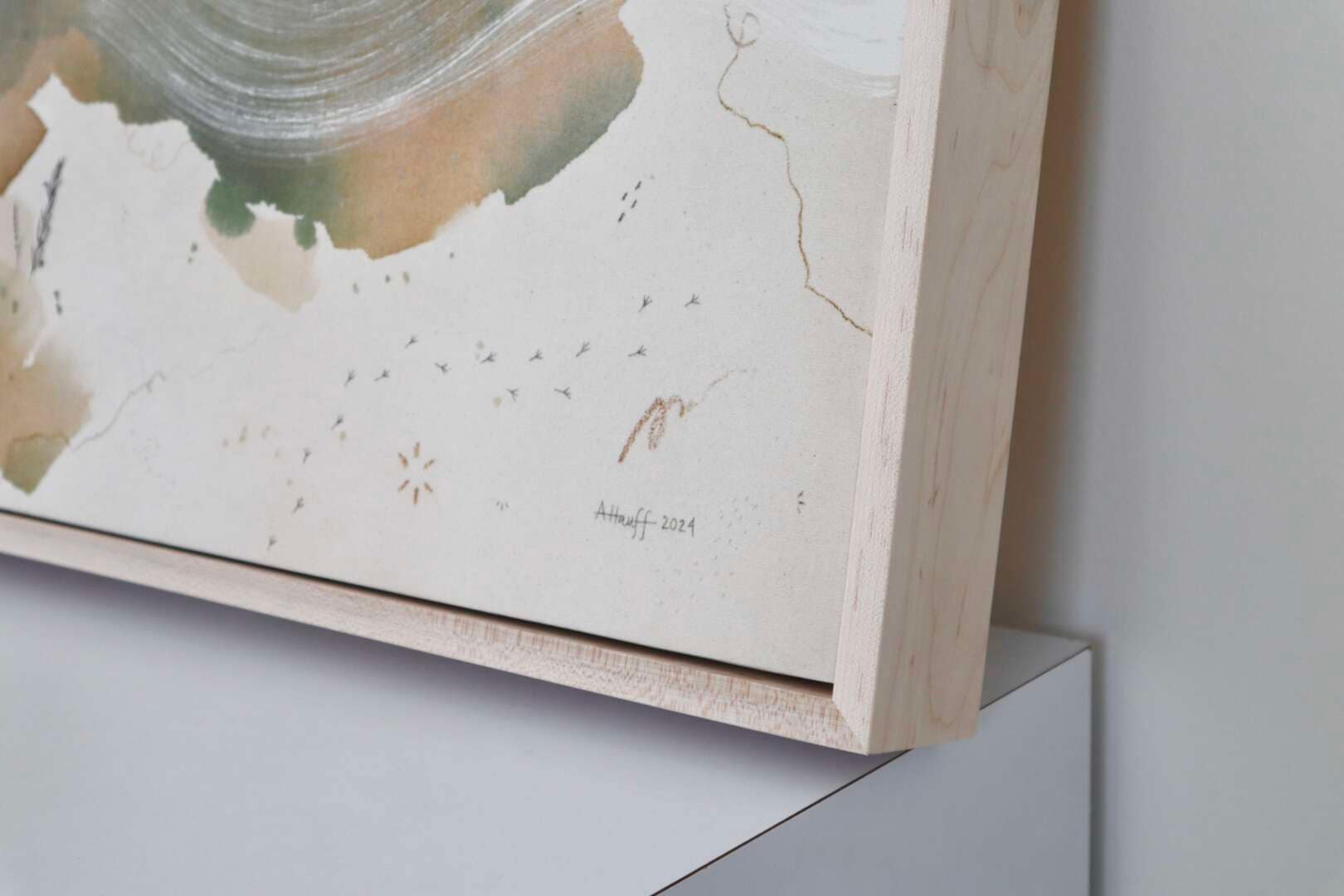 Stretched with a hardwood float frame: Image is stretched on a canvas frame and placed in a hardwood float frame of your choice (see frame options)