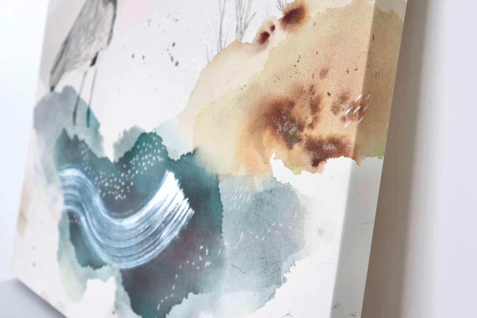 Stretched-only prints: Stretched all the way around the sides of a canvas frame (image is wrapped, as shown with Great Blue Heron print)