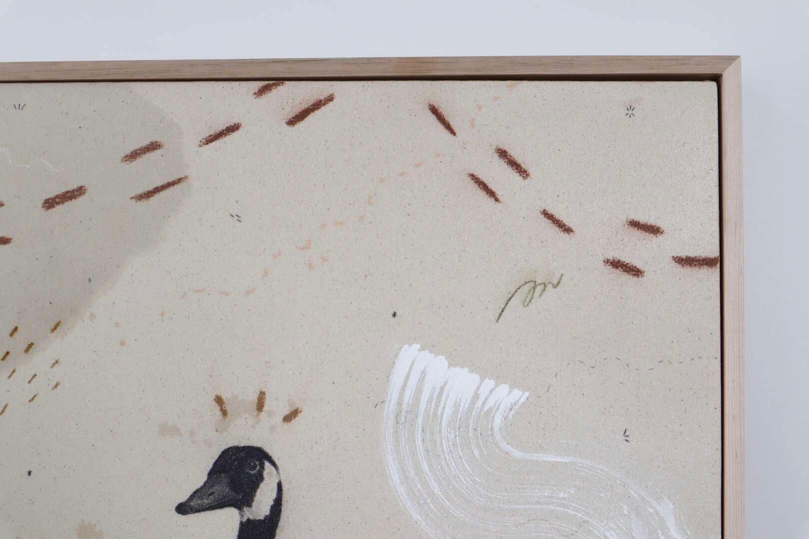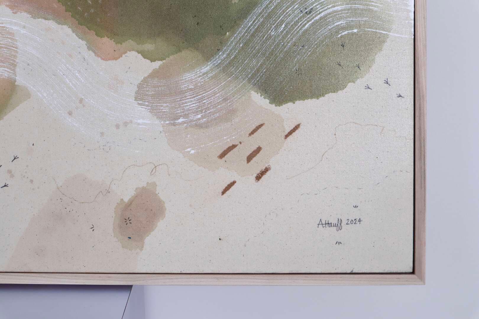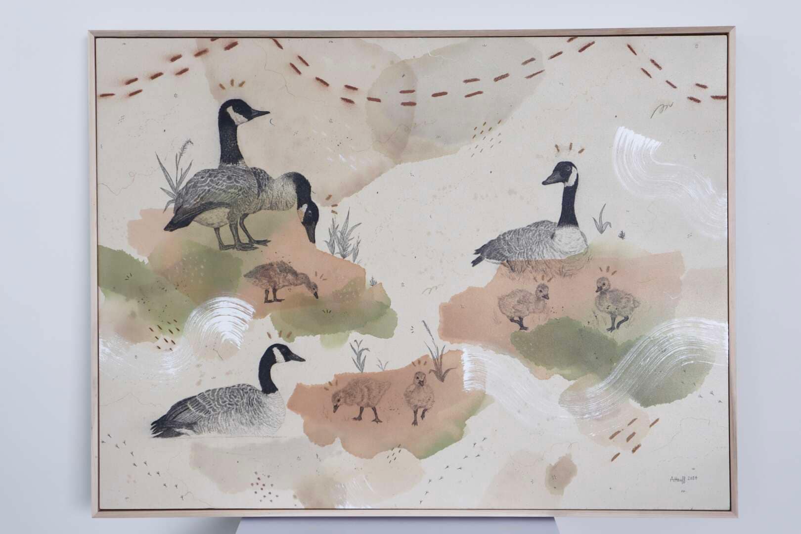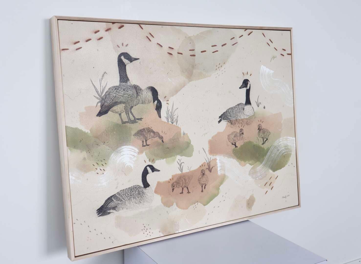 Original mixed media on raw stretched canvas with maple float frame. Alternative hardwood frames available upon request.