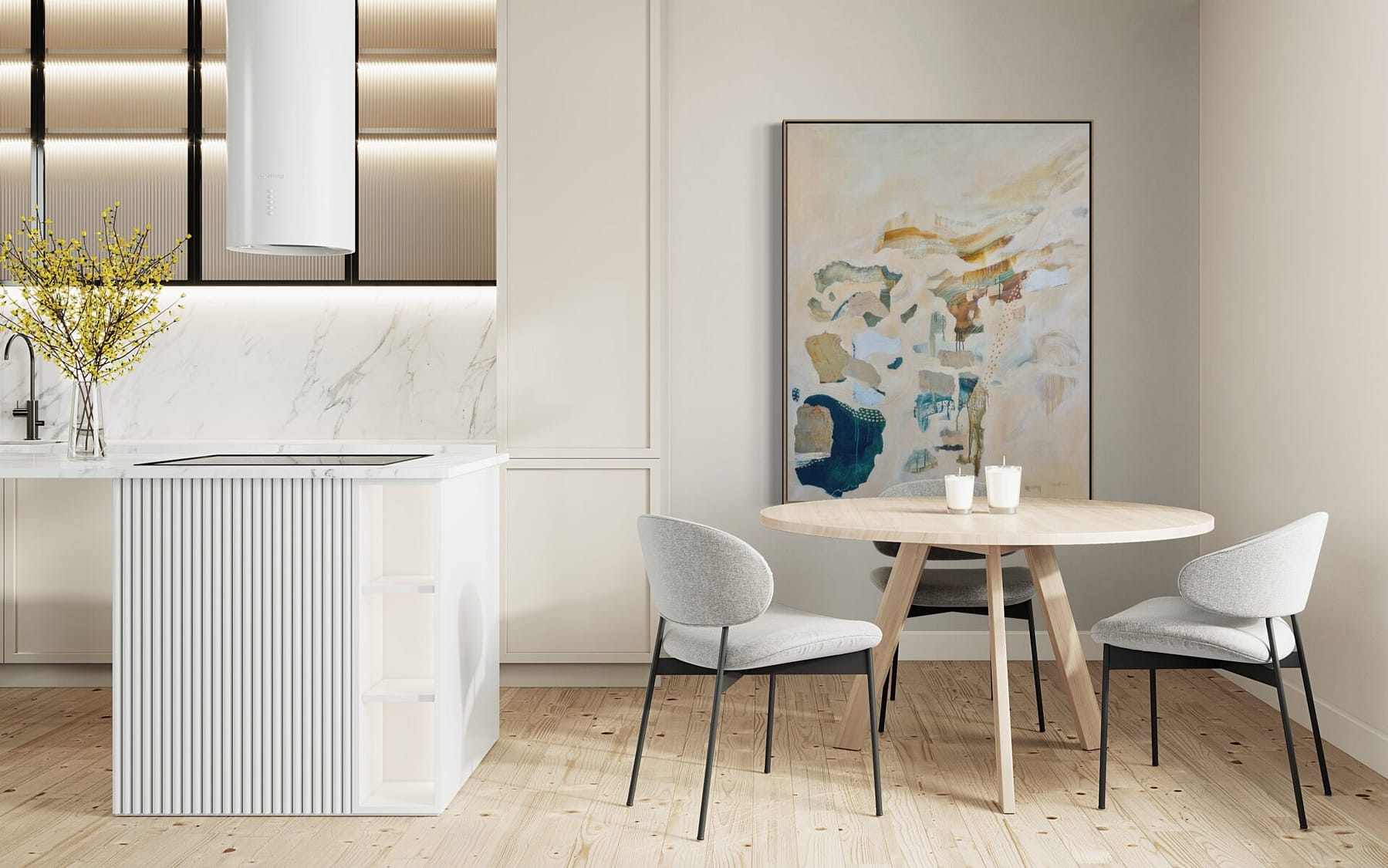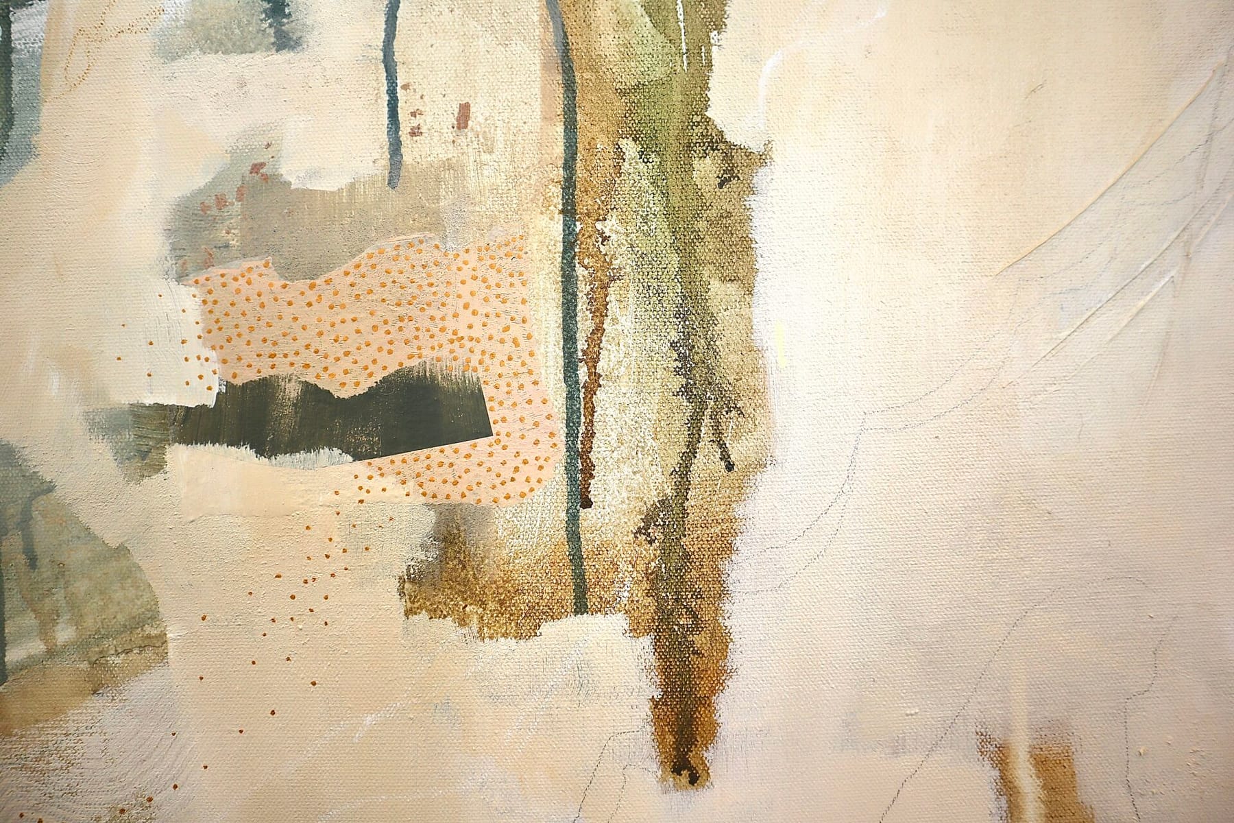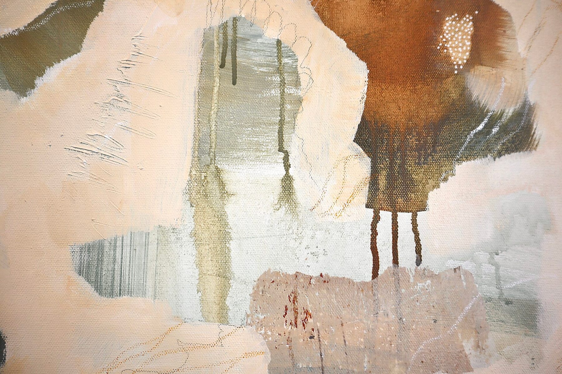This painting was a milestone for two reasons. It was the first time I painted “big” and the first painting that felt like I was homing in on my style. It was the same decision, over and over again: what do I shape and cover up? What needs to stay? I love the drips from the wet-on-wet technique that produced the dendritic elements. They reminded me of roots and grounding the self deep into the earth–into joy.