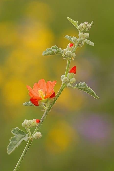 Scarlet Globemallow is accompanied by honey bee, a VIP of the pollinator sector. From National Geographic: “Honeybees are important pollinators for flowers, fruits, and vegetables. They live on stored honey and pollen all winter and cluster into a ball to conserve warmth. All honeybees are social and cooperative insects. Members of the hive are divided into three types. Workers forage for food (pollen and nectar from flowers), build and protect the hive, clean, and circulate air by beating their wings. The queen’s job is simple—she lays the eggs that will spawn the hive’s next generation of bees. There is usually only a single queen in a hive. If the queen dies, workers will create a new queen by feeding one of the worker females a special food called “royal jelly.” This elixir enables the worker to develop into a fertile queen.”