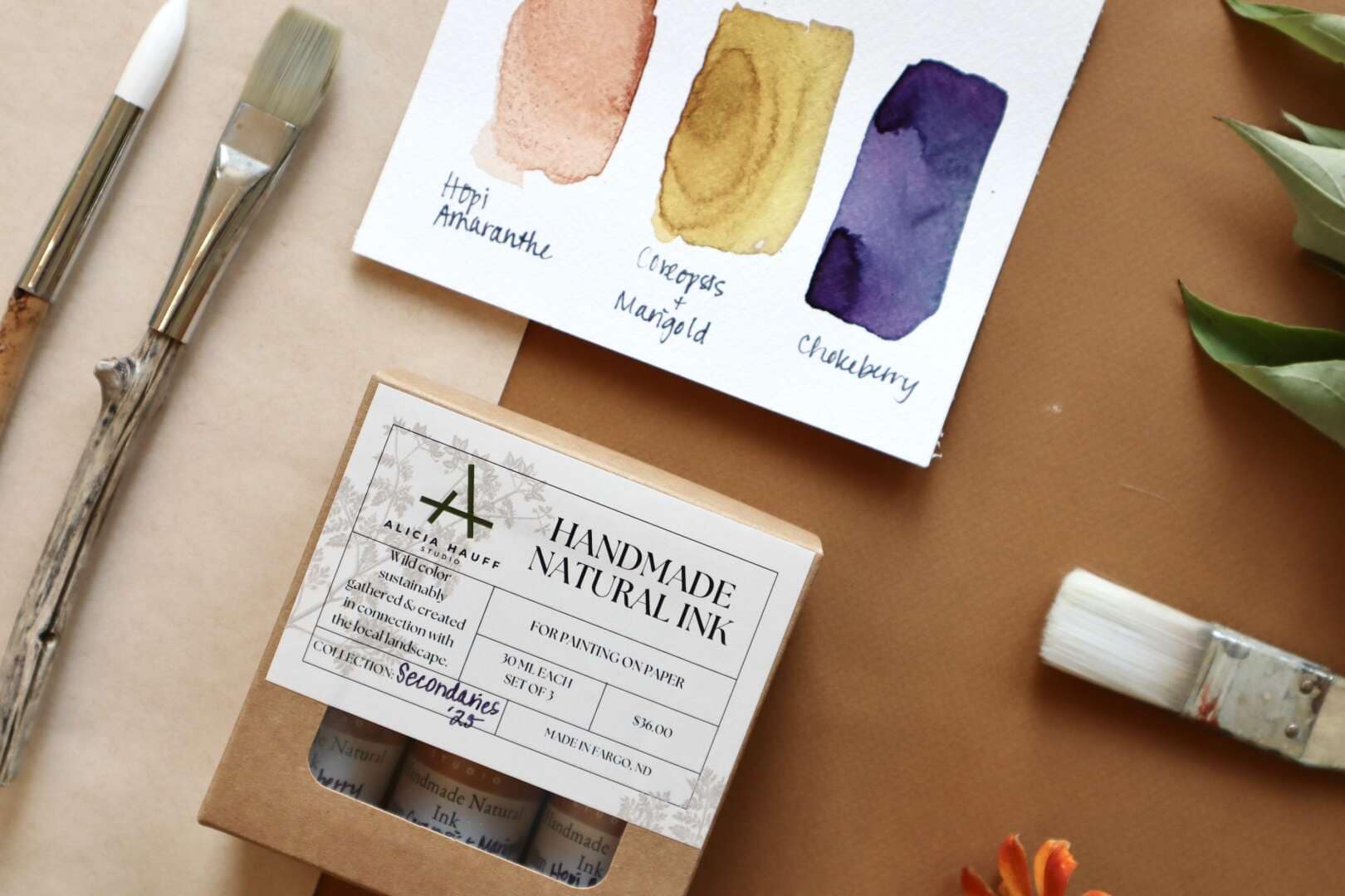 Hopi Red Amaranthe: From the tiniest seeds, leftover from years past, sprang multiple amaranthe plants in our garden this summer. Hope Red Amaranthe grows 4 feet tall! I took it as a sign to harvest some and create this ink again. The birds are already loving the grain this fall.