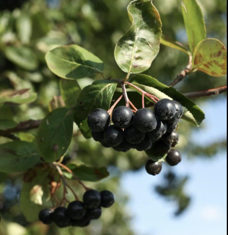 Chokeberry: We have planted many chokeberry bushes, beloved by birds, squirrels, and chipmunks. I harvest chokeberries for the vibrant purple ink, and leave plenty for wildlife.
