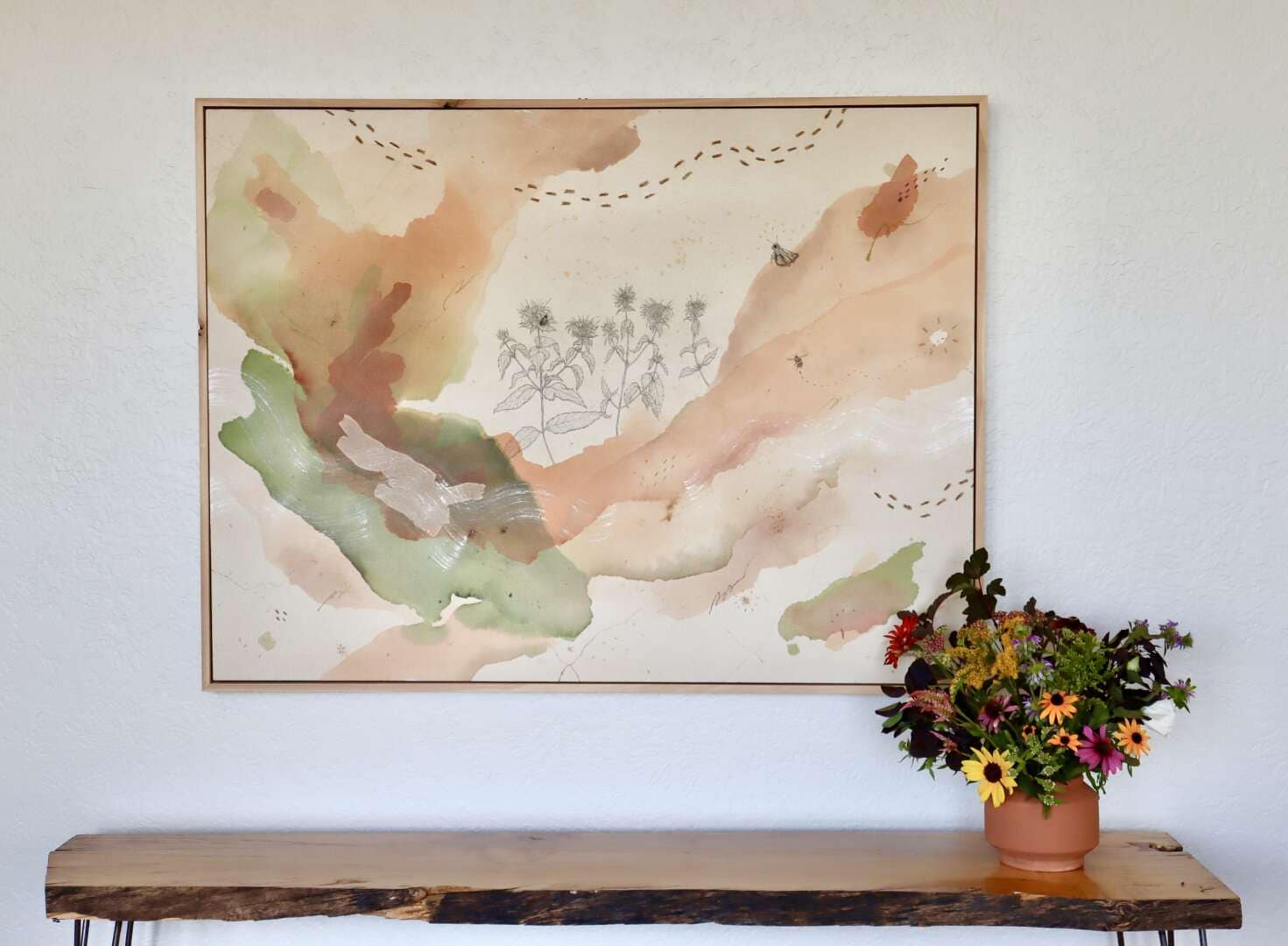 Original mixed media on raw stretched canvas.