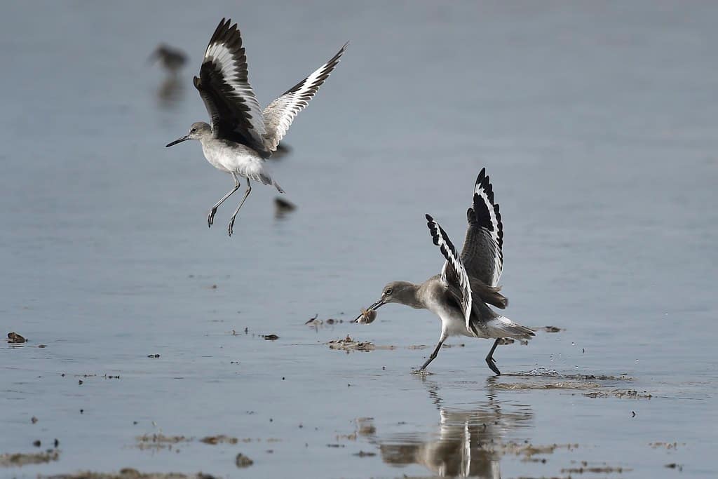 Like nearly all shorebirds, they eat aquatic invertebrates, small fish, spiders, insects, worms, and some clams along the shores they inhabit. Willet pairs often remain together for several years and return to the same nest sites. Males loudly defend their nesting and feeding territories, and help incubate and care for young.