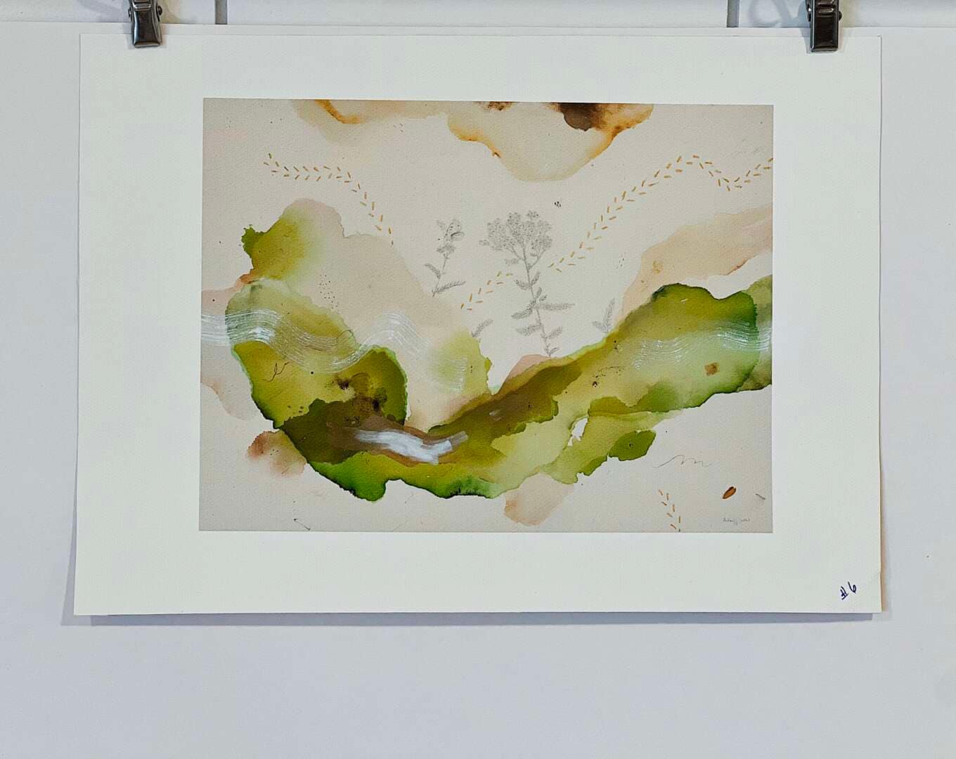 Part of the proofing process for “Yarrow, the Steady Wound Healer” fine art print, this print measures 6×7.75 inches (printed area) with uneven white margins and a small notation bottom right. Archival inks. Ready for a traditional frame with or without glass.